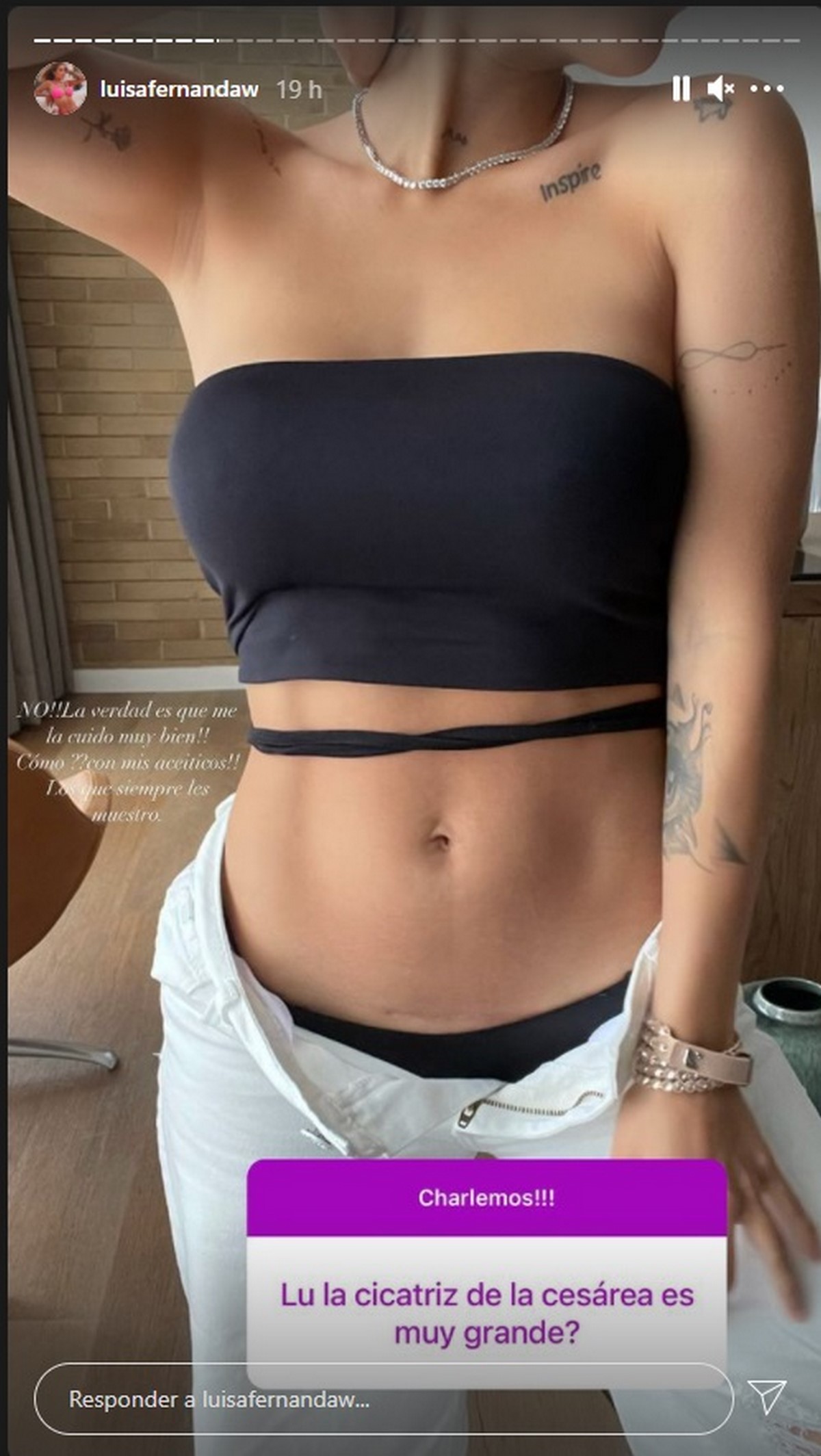 A través de sus estados de Instagram, Luisa Fernanda W estaba hablando con sus fan, uno de ellos le preguntó: “Lu, ¿la cicatriz de la cesárea es muy grande?”, por lo que ella no dudo en publicar una fotografías en la que dejaba a la vista la cicatriz que le quedó.