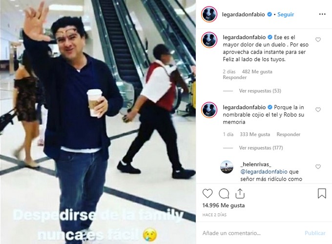 El papá del fallecido cantante Legarda, Fabio Legarda, hizo un comentario en su cuenta oficial de Instagram mencionando a “la innombrable” y todo el mundo supone que es la ex de su hijo.