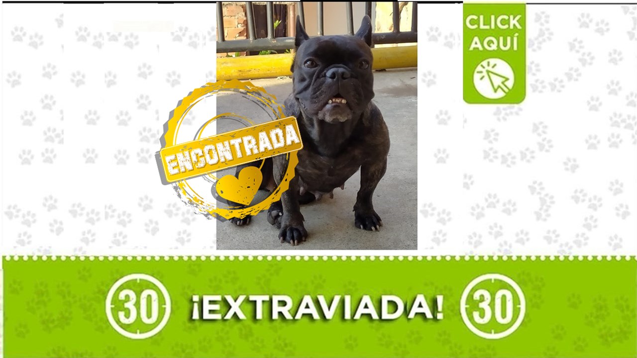 Resumen: Ayúdanos a encontrar a Luna, una bulldog francés negrita perdida en Medellín. Se perdió el domingo 26 de mayo por miedo a la pólvora. Comunícate al whatsapp si la has visto.
