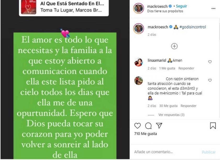Además, expresó: “el amor es todo lo que necesitas. Estoy abierto a una comunicación cuando ella esté lista. Pido al cielo todos los días que ella me de otra oportunidad. Espero que Dios pueda tocar su corazón, para yo volver a sonreír al lado de ella”.