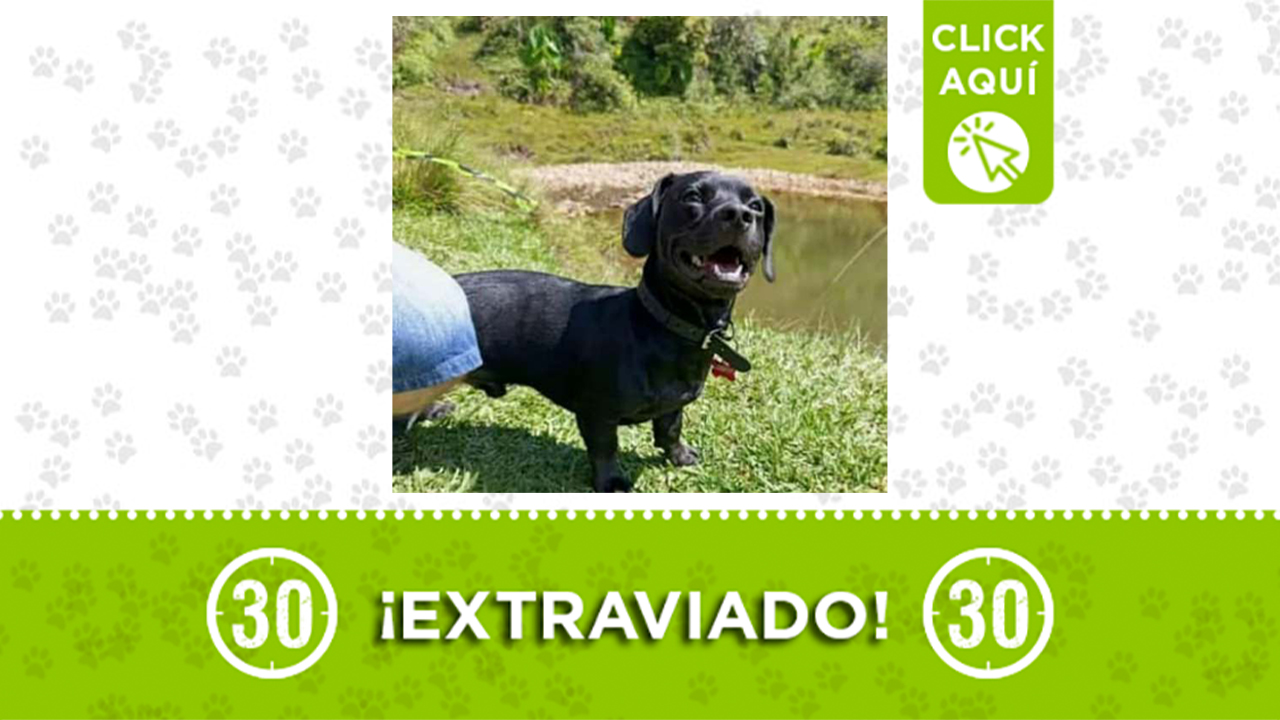 Resumen: Cooper se perdió cerca del cerro Pan de Azúcar. Lleva chaleco verde y está en tratamiento. Comunícate al 3004780249 si lo ves.