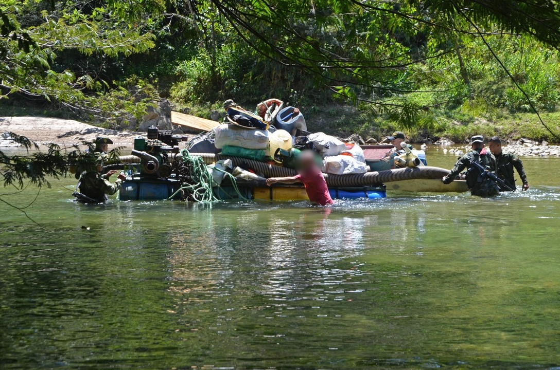 La Policía indicó, “mediante actividades de control y vigilancia ambiental se logra la captura de 17 personas entre los 34 y 53 años de edad, de los cuales fueron 13 en flagrancia y 4 por orden judicial; quienes fueron sorprendidos realizando actividades mineras con dragas artesanales, sin ningún tipo de permiso por autoridad ambiental y tráfico ilegal de madera”.