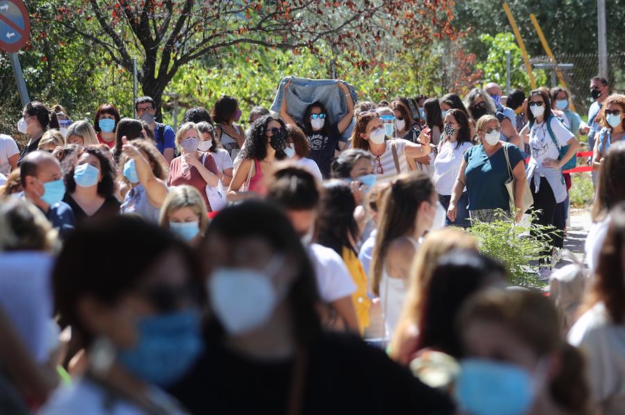 La primera jornada de realización de test de anticuerpos al personal escolar de la Comunidad de Madrid transcurrió entre largas colas y quejas de los trabajadores que han acudido al instituto Virgen de la Paloma, el único centro de la capital habilitado a este fin.
