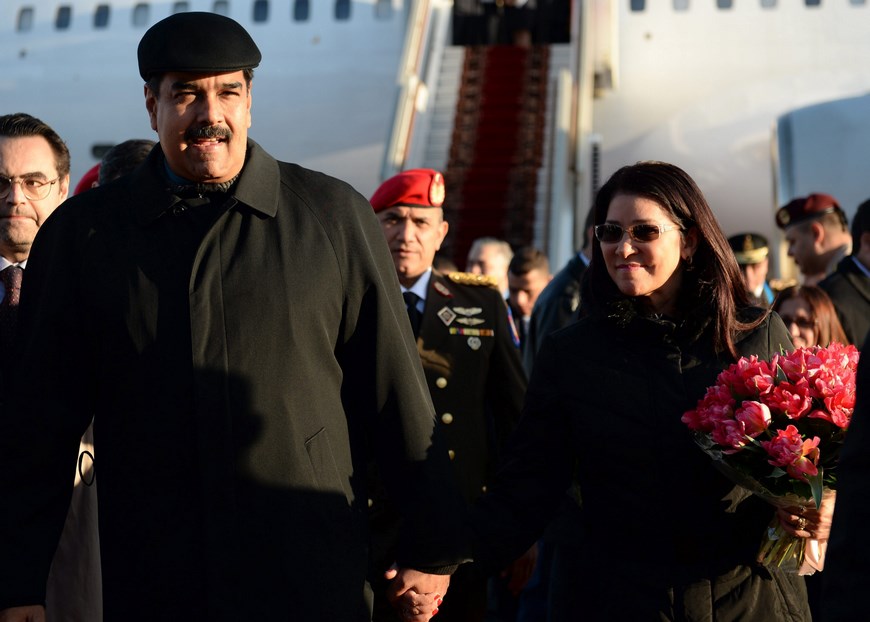 El presidente de Venezuela, Nicolás Maduro (izda), y su mujer Cilia Flores a su llegada al aeropuerto Vnúkovo en Moscú (Rusia) hoy. EFE/Host Photo Agency/Ria Novosti