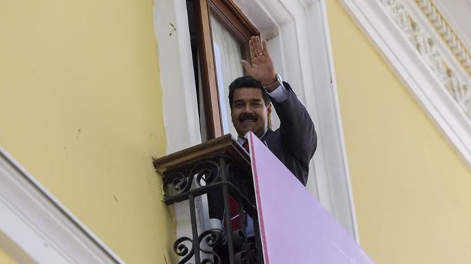 Nicolás Maduro, saluda desde un balcón de la sede de la Cancillería en Caracas (Venezuela). EFE