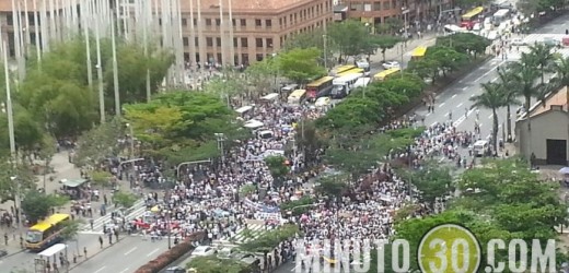 Por esta masiva concentración, la movilidad en esa zona de centro de Medellín colapsó.