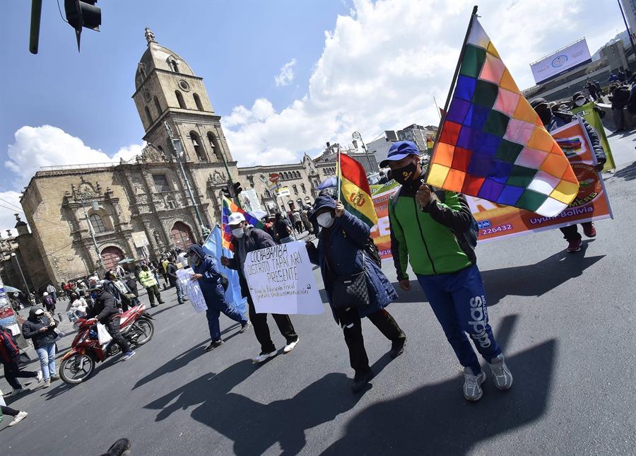 Maestros que trabajan en áreas rurales de Bolivia desafiaron este martes a la cuarentena por la pandemia de la COVID-19, por la que están prohibidos actos masivos en el país, con una movilización en La Paz en rechazo a las medidas gubernamentales para la educación virtual y a distancia.