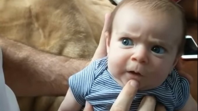 Al parecer el padre del niño aprovechó que su madre no estaba, para sacarle una sonrisa y jugar de manera divertida con su hijo.