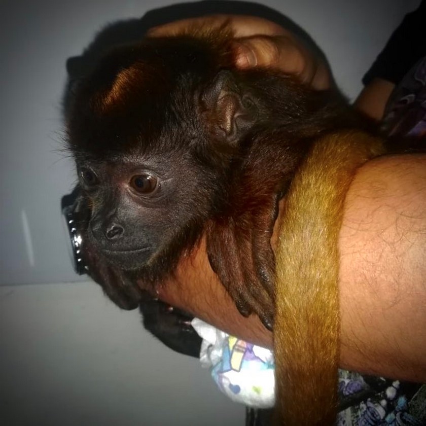 Según las autoridades, al ver la actitud del sujeto, se solicitó el registro y se logró identificar que en su equipaje escondía a un primate macho de la especie Alouatta seniculus conocido como mono aullador rojo.