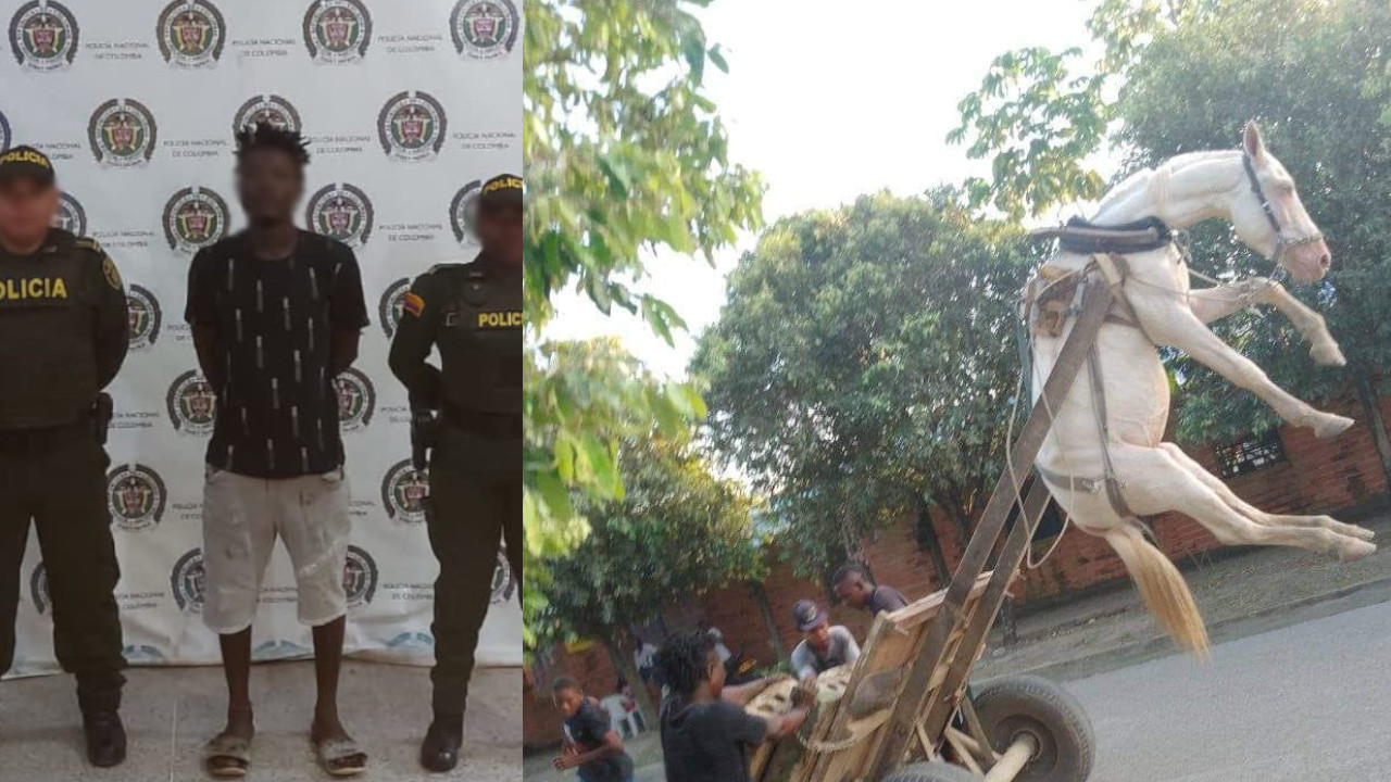 Un hombre de 27 años de edad fue capturado por la Policía de Turbo, por el presunto delito de maltrato animal. Un caballo, amarrado a una carreta, terminó literalmente por los aires debido al exceso de carga que estaba transportando.