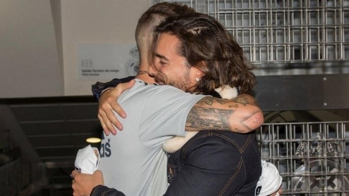 El artista publicó varias fotografías, en una de ellas se ve abrazando al defensa central del Real Madrid y es tanta la emoción que parece faltarle poco para soltar las lágrimas.