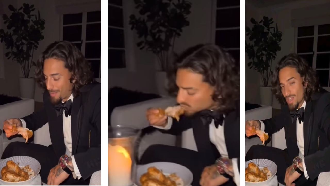 En el video que quedó circulando en redes, “Don Juan”, acompañado utiliza el tenedor y el cuchillo pero desiste de hacerlo con la frase “no papi el pollo se come con la mano“, quien lo graba apoya la decisión y él disfruta el pollo. Al igual que hacen otras celebridades después de las galas la comida rápida como pizzas y hamburguesas el cantante urbano escogió el producto que más prefieren los colombianos. Recordemos que J Balvin también ama el pollo como Maluma, dejando ver que solo le gusta “Frisby” así le digan montañero.