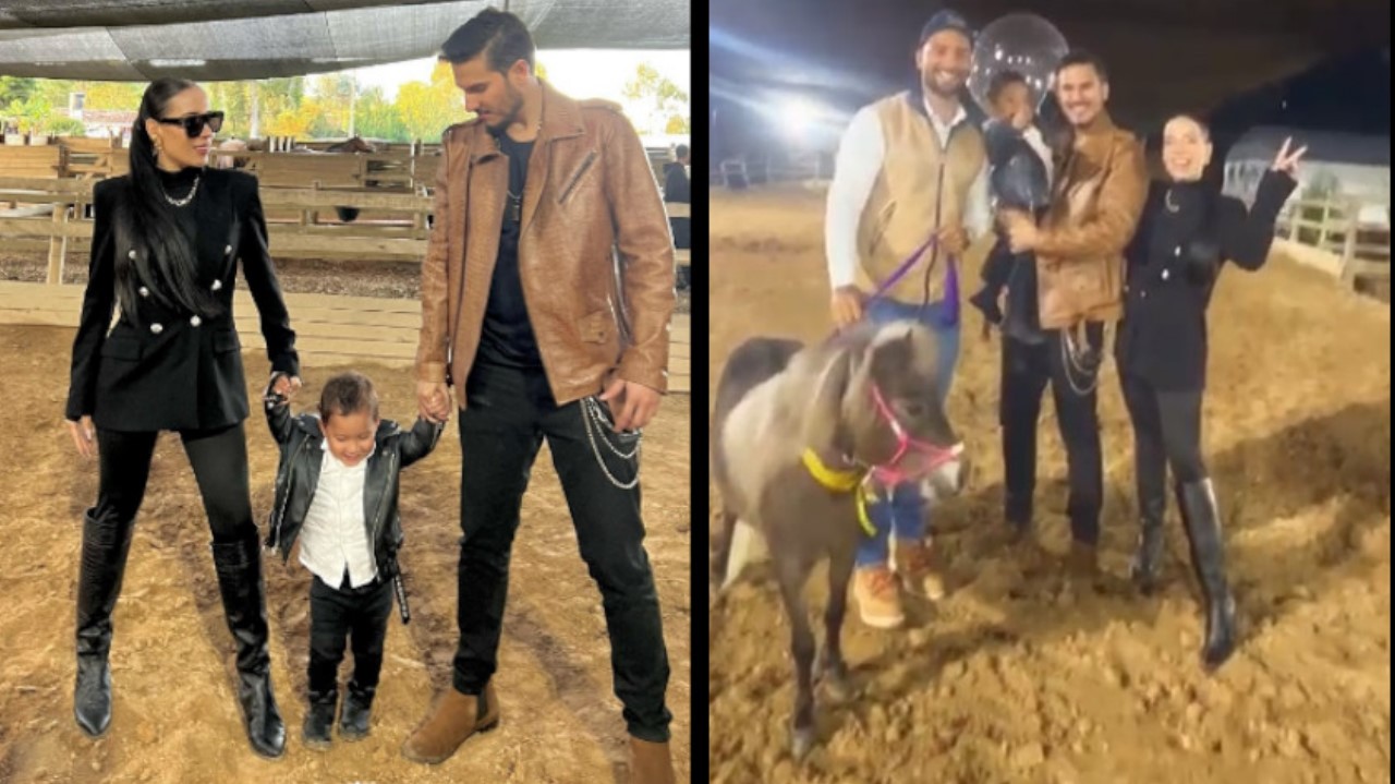 Cuando Luisa vio que el cantante llegaba con el regalo empezó a grabar, Pipe tenía cargado a Máximo y Maluma le acercó el pony para que el niño lo tocara.