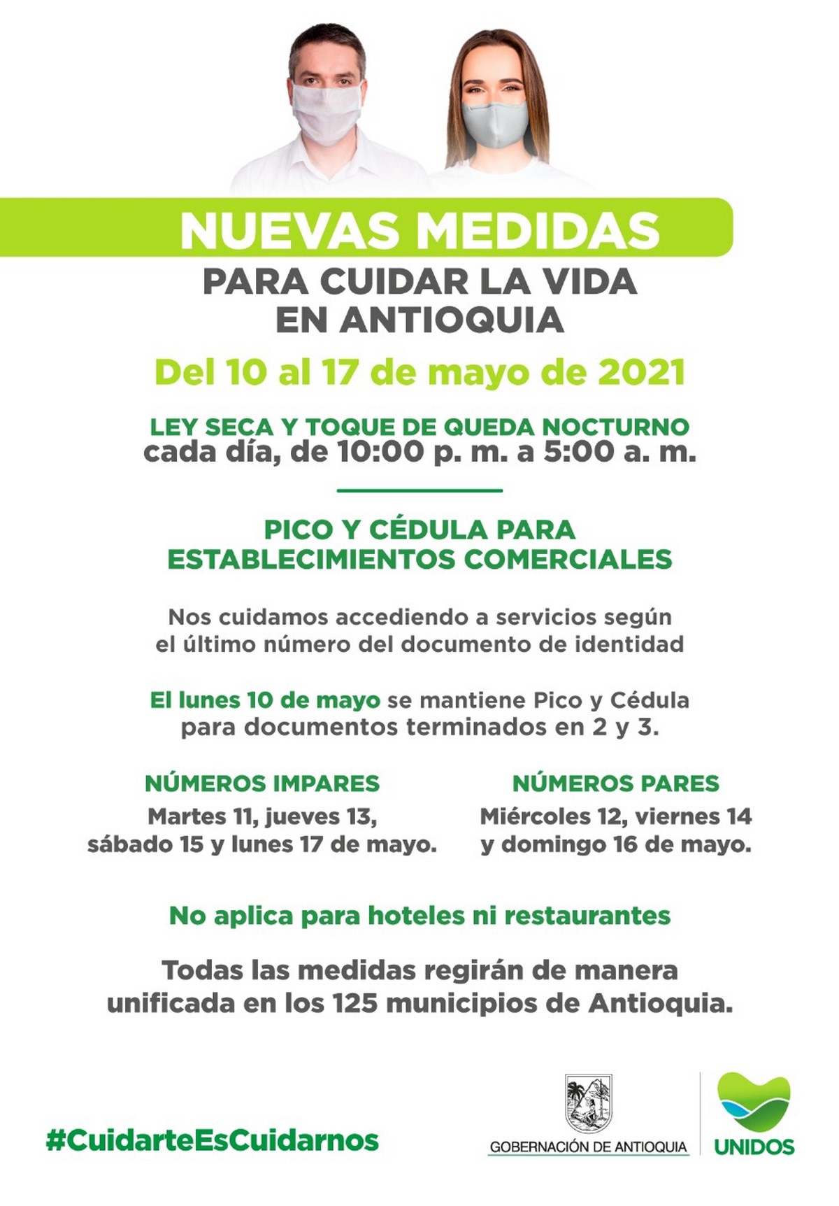 Comparte esta publicación y redobla el AUTOCUIDADO.😷 🧼💦 ✋🏽🤚🏽#CuidarteEsCuidarnos pic.twitter.com/LKgaTCWpvO— Gobernación de Antioquia (@GobAntioquia) May 9, 2021