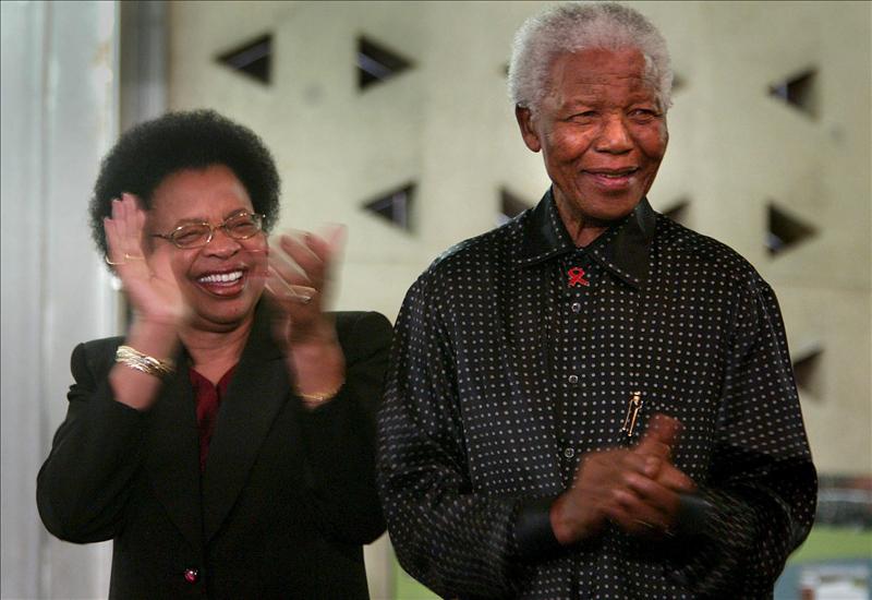 El ex presidente de Sudáfrica y Premio Nóbel de la Paz Nelson Mandela (d) y su segunda mujer, Graca Mache