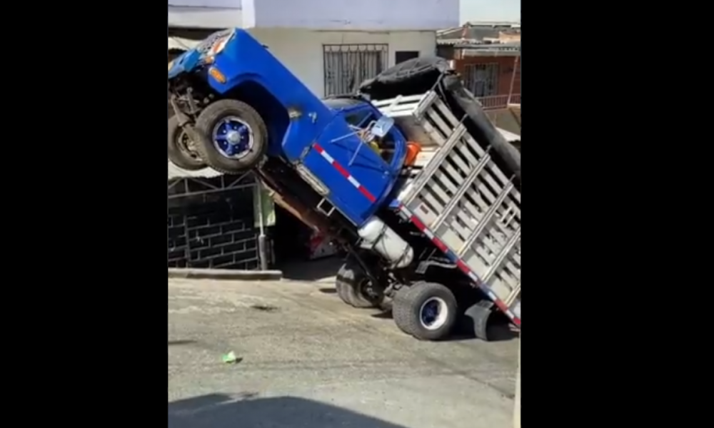 El hecho se registró en el sector de Manrique Oriental en la vía La Cruz, cuando un vehículo de carga quedó parado entre sus dos llantas traseras, pareciendo como si estuviera haciendo “piques”.