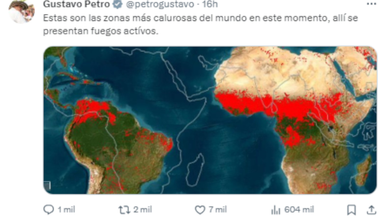 La imagen fue compartida por el presidente Gustavo Petro, la cual evidencian los puntos de calor con las temperaturas más altas en todo el mundo.