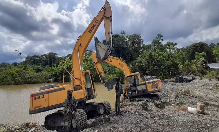 Maquinaria que era utilizada de la explotación ilícita de yacimientos mineros fueron incautadas por las autoridades, quienes confirmaron que estarían avaluadas en más de 12 mil millones de pesos.