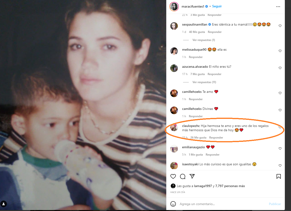 “Eres igualita a tu mamá”, “Lo más curioso es que son igualitas”, “Son dos gotas de agua. Mucha vida bonita para tu mami”; fueron algunos de los comentarios que recibió Mara.
