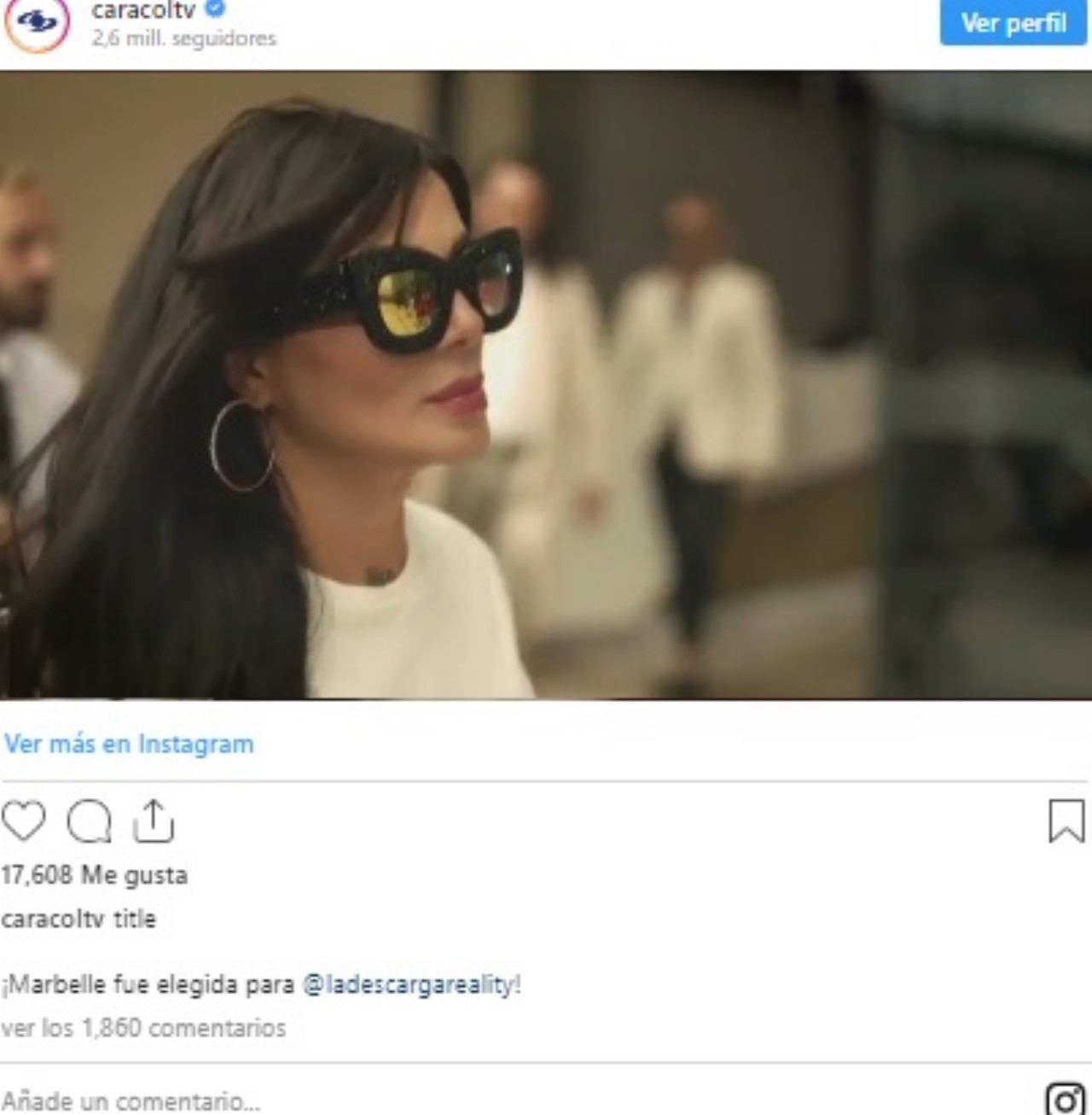 La cantante Marbelle mostró que fue la elegida para hacer parte de un programa de televisión colombiana.