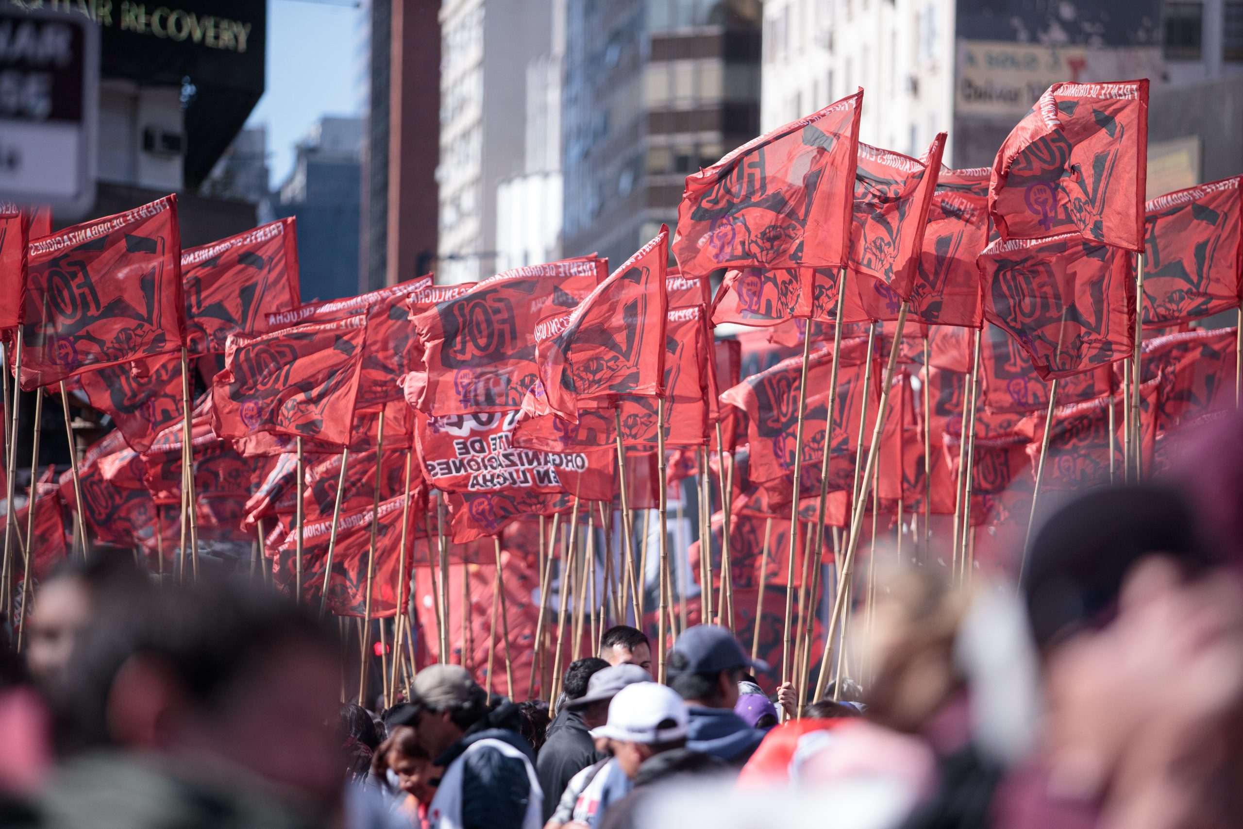 La movilización terminó con incidentes cuando un grupo de manifestantes comenzó a arrojar piedras y otros elementos contra una sede policial en las inmediaciones del Obelisco.