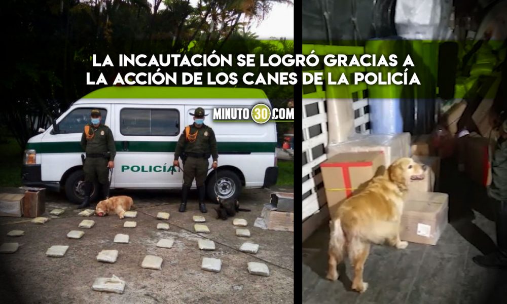 Así mismo en controles al transporte intermunicipal en el municipio de Copacabana, gracias a la señal positiva del canino de nombre “Homero” fueron hallados debajo de un asiento desocupado de un bus y dentro de una bolsa,