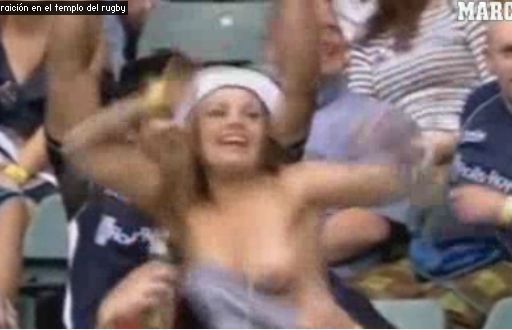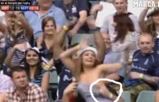 rugby2El espectacular ‘topless’ en el templo del rugby fue una traición de su acompañante quien la tomó desde atrás y bajó su camisa ante un estadio abarrotado.