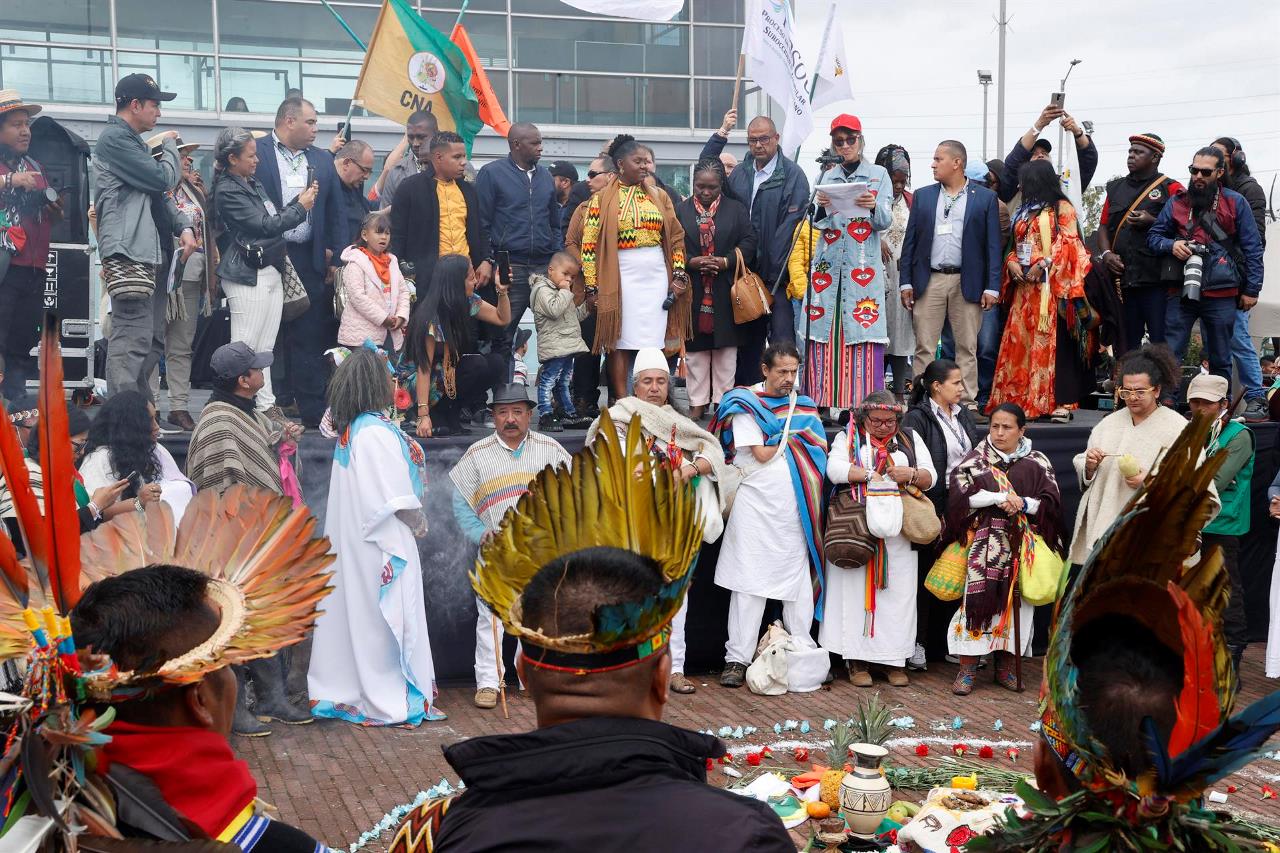 La entrante vicepresidenta Francia Márquez (c) participa en una ceremonia de posesión popular y espiritual con indígenas hoy, en Bogotá (Colombia). EFE/ Mauricio Dueñas
