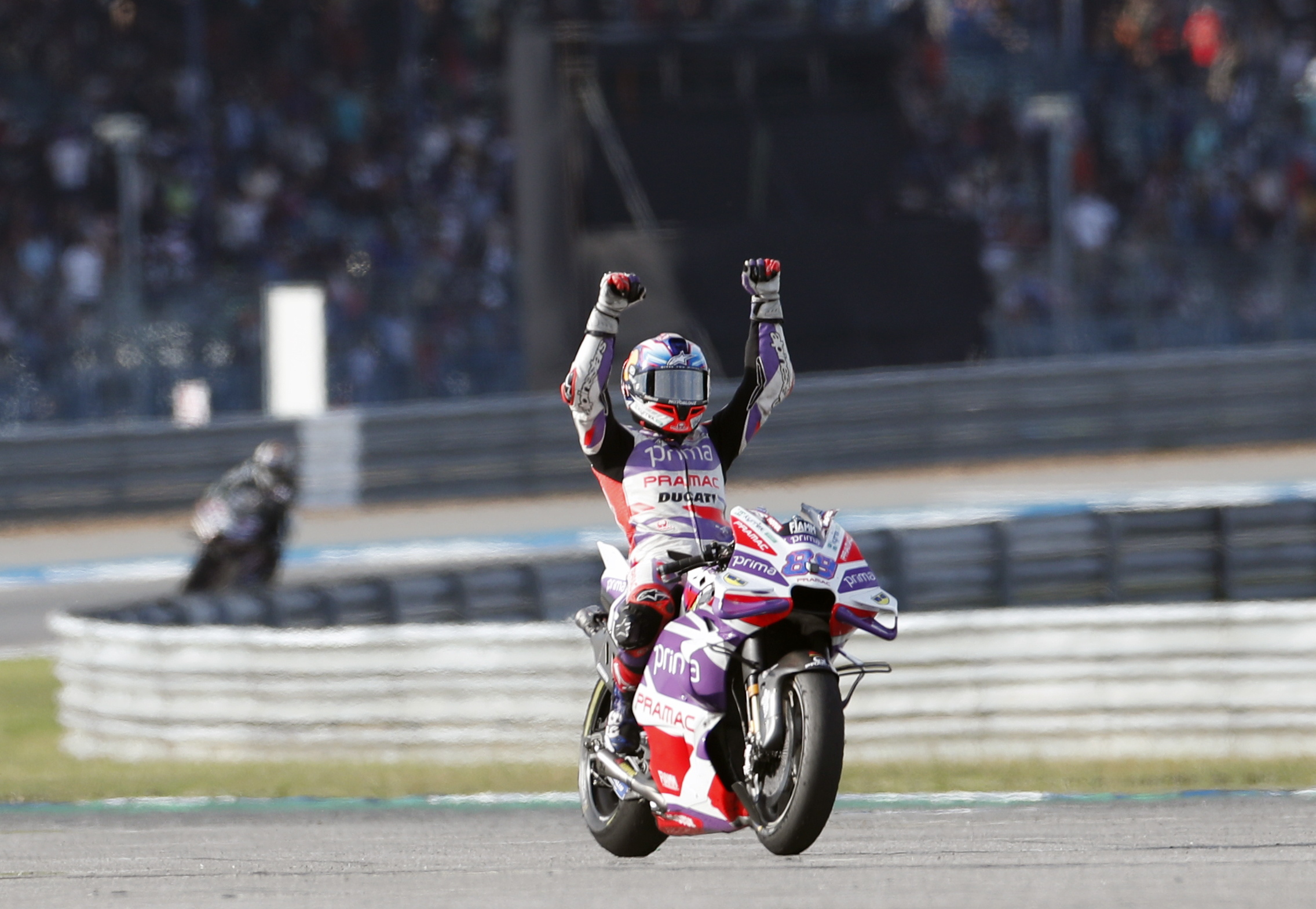 Martín consiguió hacer "doblete" en Tailandia para recortar 14 puntos al líder del campeonato, el italiano Francesco "Pecco" Bagnaia (Ducati Desmosedici GP23), en una carrera que no conoció al vencedor hasta la misma línea de meta, en la que el español fue primero por delante del surafricano Brad Binder (KTM RC 16), al que sancionaron con la pérdida de una posición por exceder los límites del circuito en la última vuelta, lo que entregó la segunda posición al italiano.