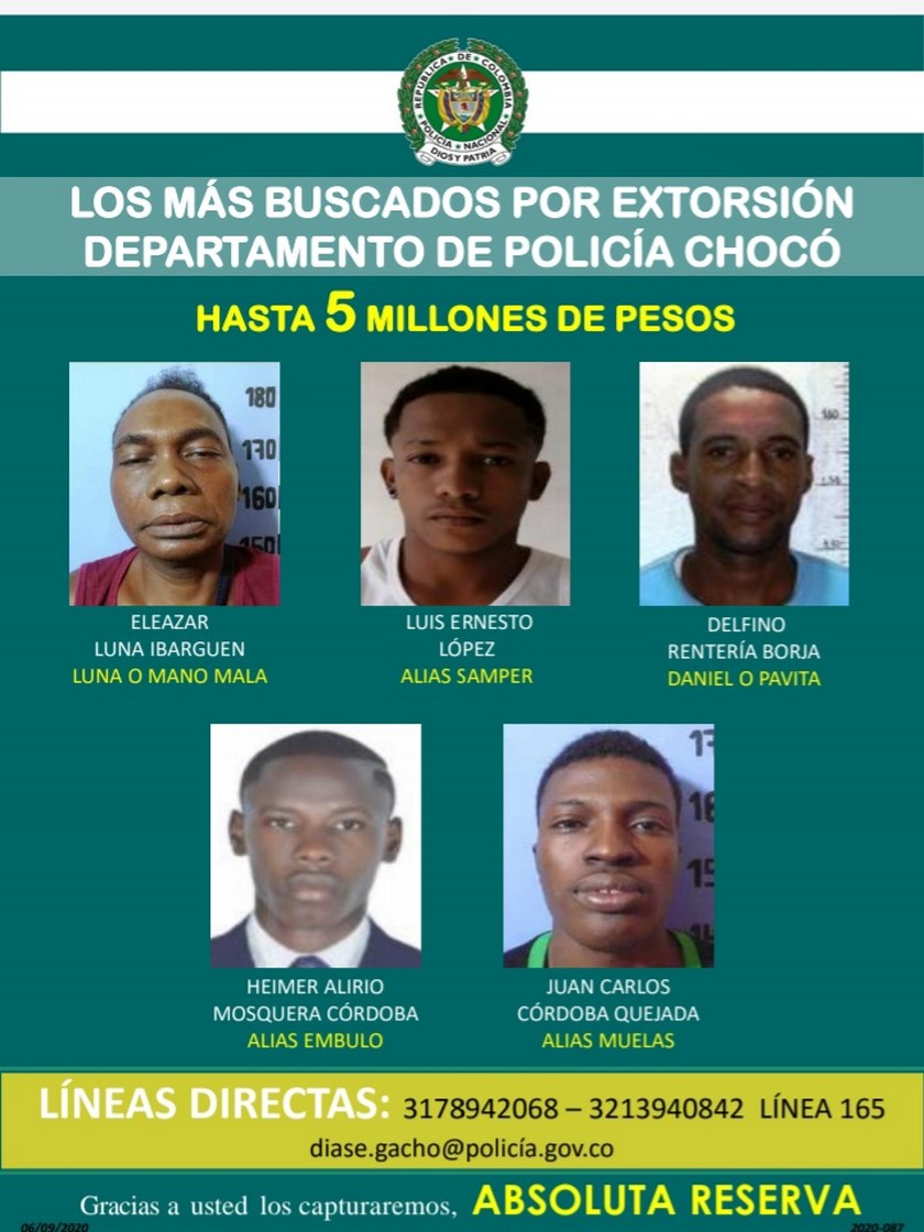 FOTOS: ¡Ayude a que los cojan! Estos son los más buscados en Chocó por cobrarle ‘vacuna’ a la ciudadanía