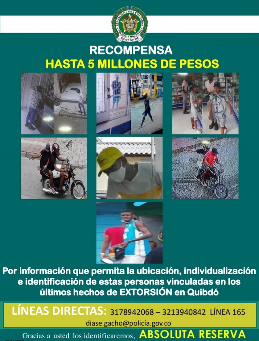 La Policía Nacional en el Chocó y el grupo Gaula reforzó las actividades de prevención en el sector comercial de Quibdó y dio a conocer los carteles con los cinco delincuentes más buscados en el departamento por el delito de extorsión.