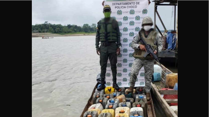 La Policía en coordinación con la Armada Nacional, realizaron la incautación de 1000 galones de combustible (ACPM) en operaciones de registro y control fluvial desarrolladas en el municipio de Quibdó, Chocó.