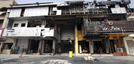 Estado en el que quedó una zona comercial en Mansur tras ser objetivo de un atentado con bomba, en la zona oeste de Bagdad (Irak). EFE.