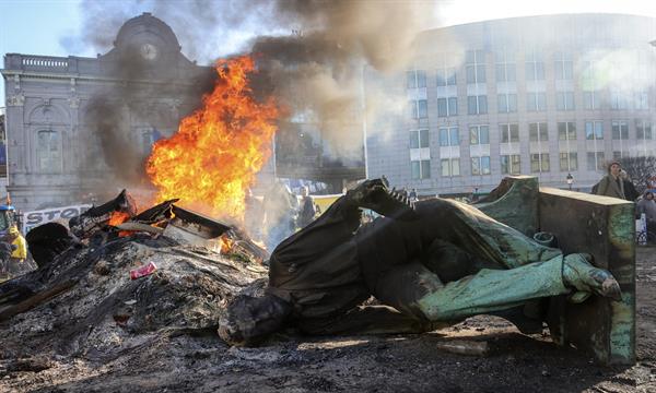 Precisamente allí fue donde los representantes del sector agrario protagonizaron el incidente más grave de las acciones llevadas a cabo este jueves: la quema de la estatua del industrial de origen británico John Cockerill, conocido como "Padre de los obreros" y responsable de abrir en el siglo XIX importantes acerías en el país.