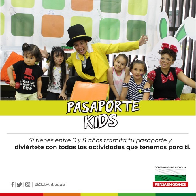 El próximo sábado 18 de agosto se realizará “Pasaporte kids”, una manera diferente y divertida al momento de obtener el pasaporte para los niños antioqueños entre 0 y 8 años.