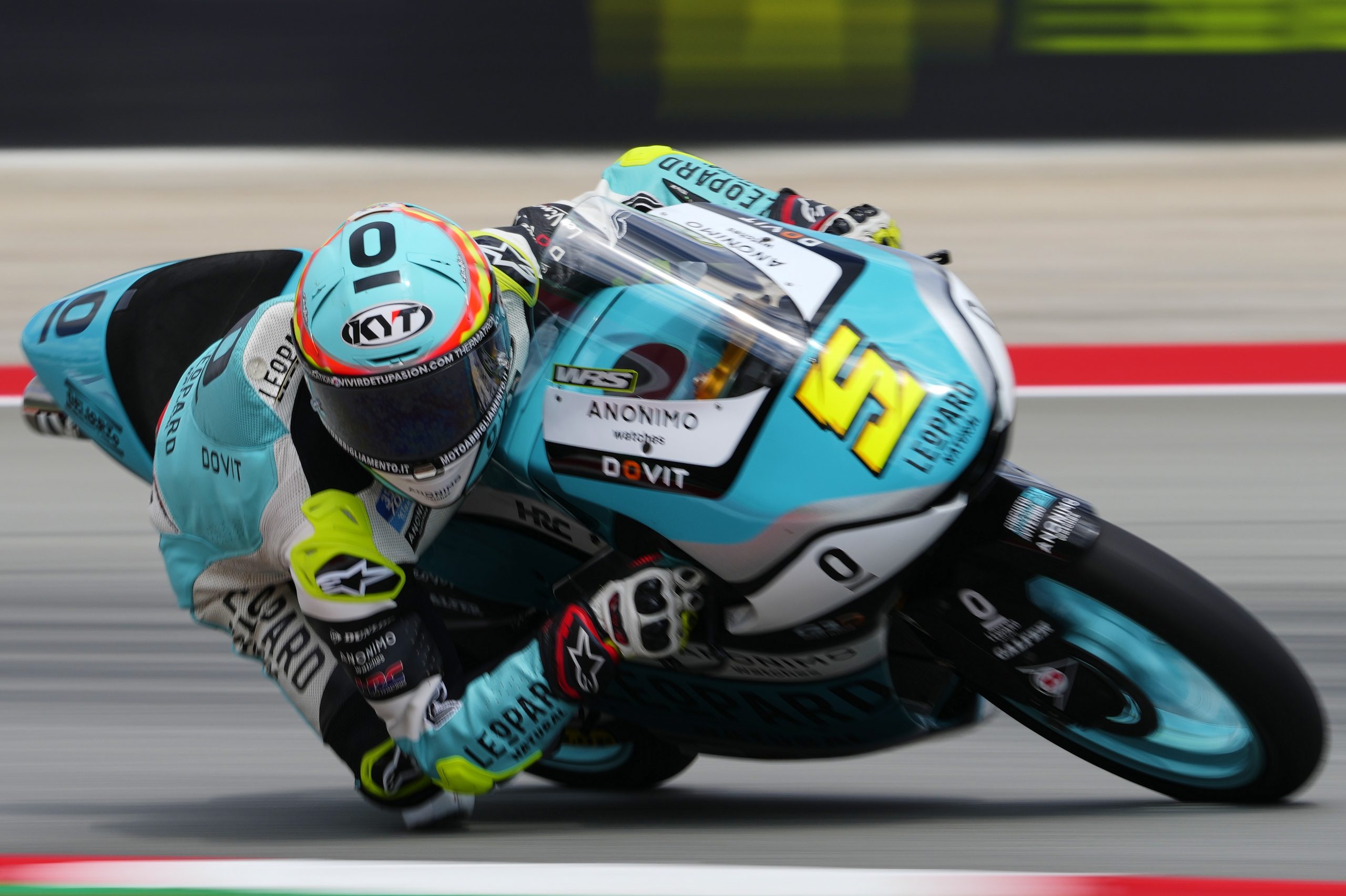 Por entonces, con apenas dos vueltas recorridas, el líder del mundial desde la primera carrera del año, en Portimao (Portugal), el español Daniel Holgado (KTM), se encontraba en la décima posición en el grupo de Diogo Moreira y el colombiano de origen español David Alonso (Gas Gas) -vencedor de tres grandes premios- y con muchas complicaciones para mantener el ritmo de sus rivales.