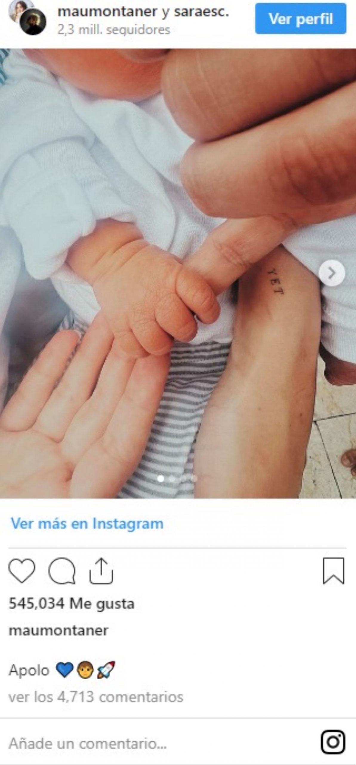 Nació Apolo, primer hijo de Mau Montaner