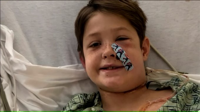 El niño estaba jugando en una casa de árbol cuando una avispa lo atacó, y al tratar de huir tropezó y cayó encima del objeto metálico, traspasándole la parte izquierda de la nariz y la cara hasta la parte trasera del cráneo.