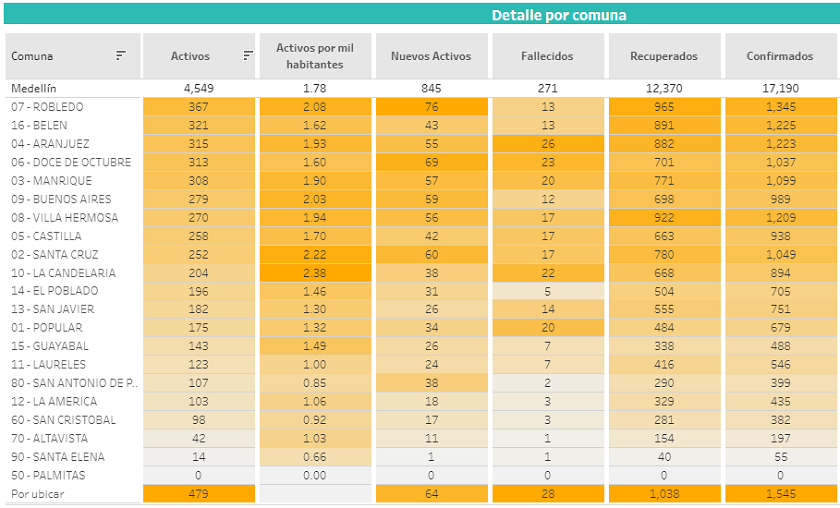 La capital antioqueña tiene 4.549 casos activos, en tanto que los recuperados son 12.370 en total.