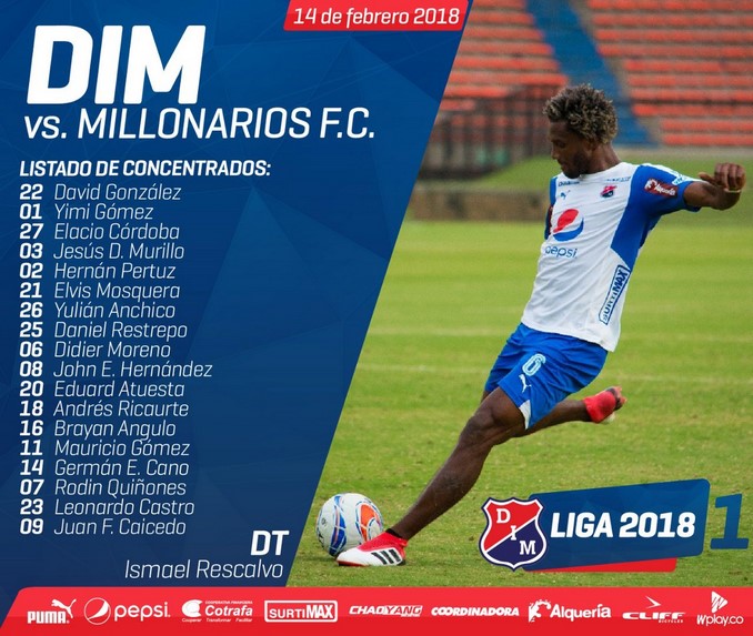 Minuto30.com- El entrenador de Independiente Medellín, Ismael Rescalvo, cuenta con nuevas fichas para enfrentar este miércoles (8:00 p.m.) a Millonarios, en el Estadio Atanasio Girardot, en cumplimiento de la tercera fecha de la Liga Águila I-2018.