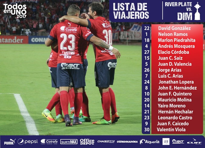 Además de los deportistas que figuran en el listado oficial de viajeros, también se desplazarán a Buenos Aires con el resto de sus compañeros Didier Moreno y Christian Marrugo, a pesar de que no podrá jugar el jueves por sanción.