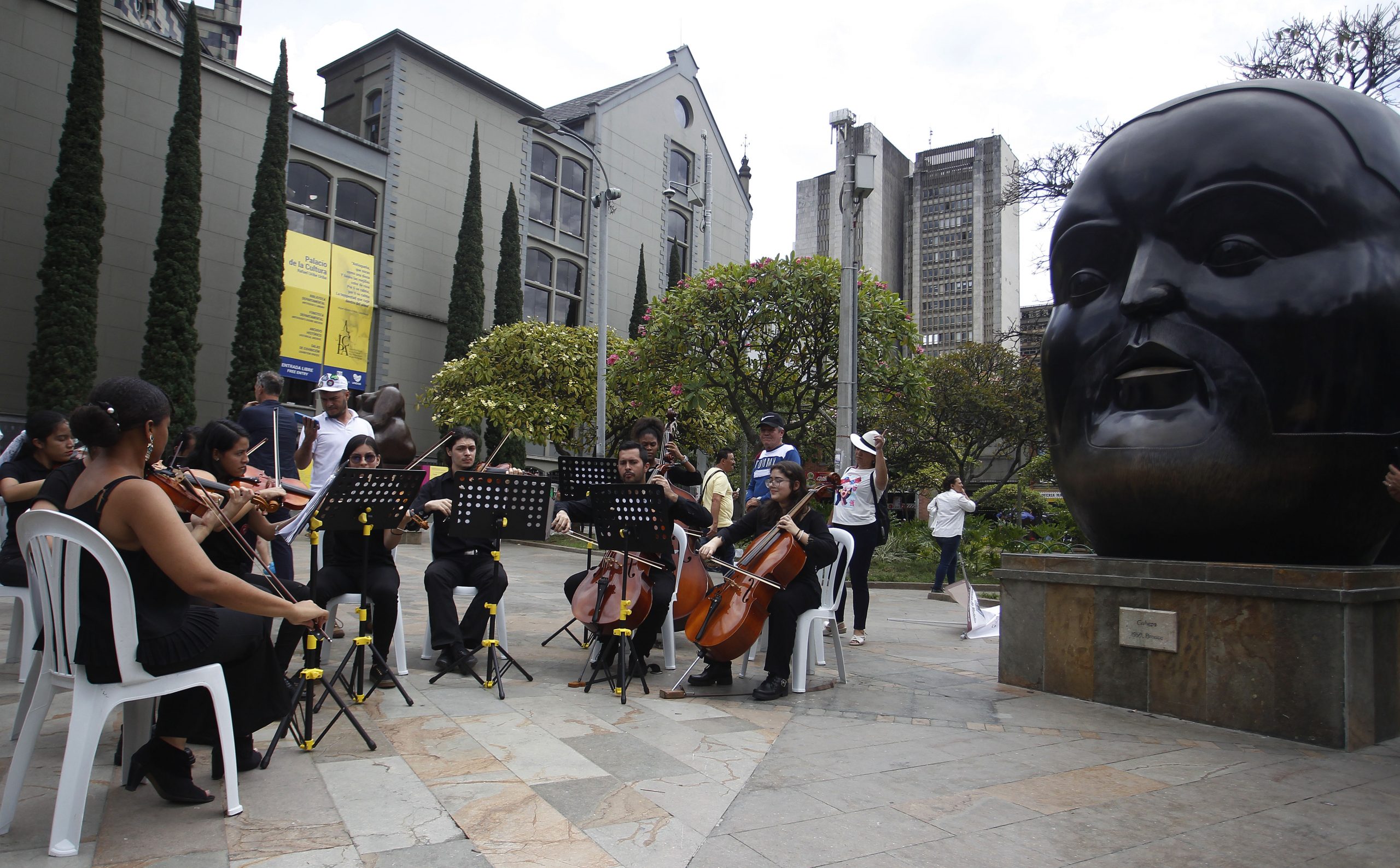 En la Plaza Botero, donde reposan 23 esculturas en galería a cielo abierto, con las interpretaciones de la Escuela de Música de Boston de "El día que me quieras" y "Yesterday" empezó el homenaje póstumo, organizado por las autoridades locales, al que se fueron sumando espontáneos poniendo flores a los pies de sus obras y escribiendo mensajes en un muro.