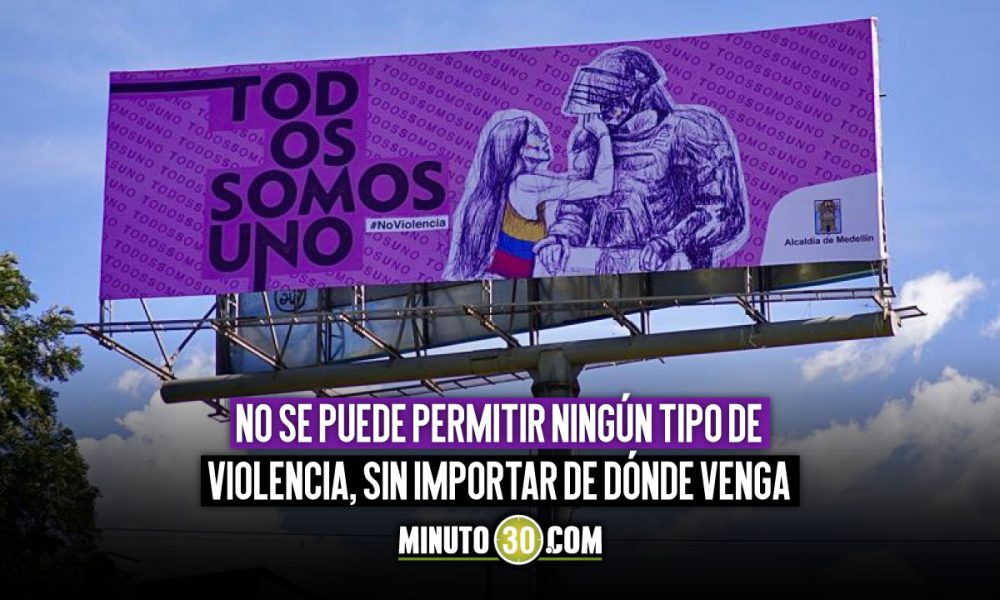 Por eso, en Medellín la Alcaldía instaló unos mensajes en algunas vallas de la ciudad, donde se busca generar conciencia, y entender que si bien hay diferencias, la fuerza pública y la ciudadanía son lo mismo, pueblo, y no deben enfrentarse entre sí.