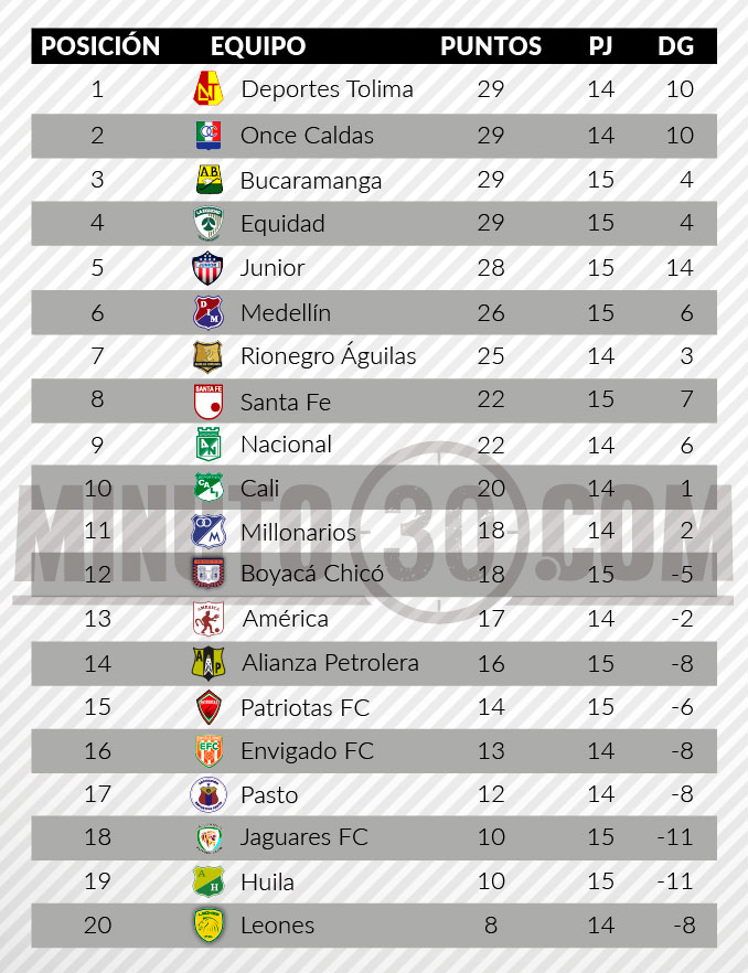 Con su derrota ante Once Caldas (1-0) en el Palogrande, Santa Fe le dejó las puertas abiertas al ‘Verde’, que previo a este encuentro, está parcialmente en la novena posición, con 22 puntos.