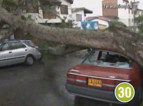 Minuto30.com .- Un estruendo que se sintió al medio día en el Sector de Don Quijote fue producido por un árbol que cayó. Dos vehículos fueron afectados.