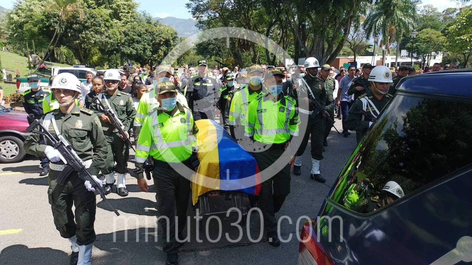 Es doloroso el momento que viven en la mañana de este lunes 18 de julio, los policías que acompañan hasta su última morada al uniformado que fue asesinado el pasado sábado cuando detonaron un artefacto explosivo en un puesto de control en Cañasgordas, Antioquia.