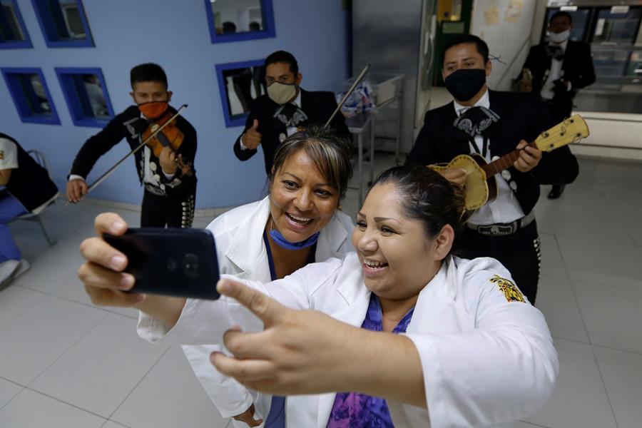 Karla Hernández, representante del grupo La Mirilla, dijo a Efe que quisieron agradecer a las mujeres de intendencia, médicas y enfermeras que han dejado a sus familias para cuidar a los pacientes contagiados con la enfermedad, que suma 333.460 casos confirmados y 3.353 muertes en el país.