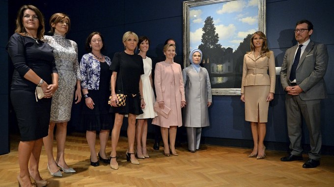 Por la tarde, las esposas de Trump y Macron disfrutaron junto al resto de consortes de una visita privada al museo Magritte, dedicado al surrealista belga mas famoso, una obra de la que la primera dama de EEUU ya era “buena conocedora” y “entusiasta”, según explicó a Efe el director de los museos reales de Bélgica, Michel Draguet.