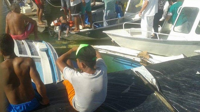 Fotografía cedida por la Defensa Civil que muestra la embarcación que naufragó en un río amazónico hoy, miércoles 23 de agosto de 2017, en Porto de Moz (Brasil). EFE/Defensa Civil