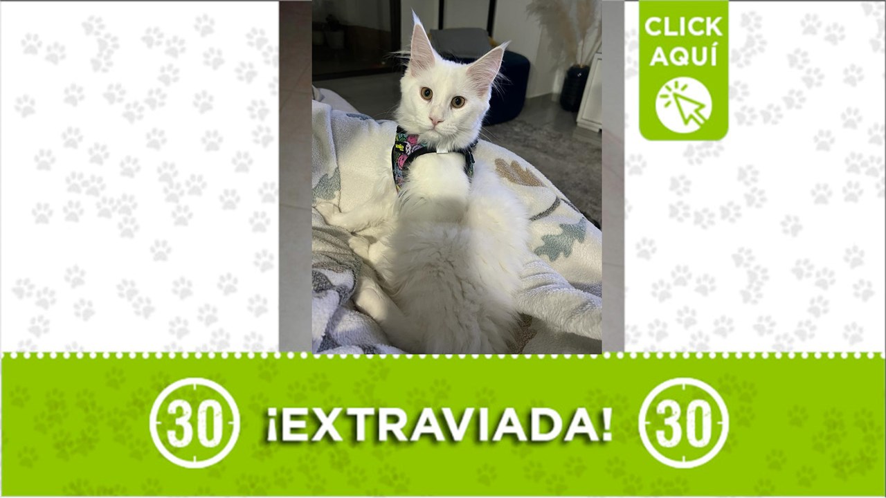 Minuto30.com .- Mérida es una hermosa gatita blanca que se extravió. Si la has visto comunícate al whatsapp de contacto.